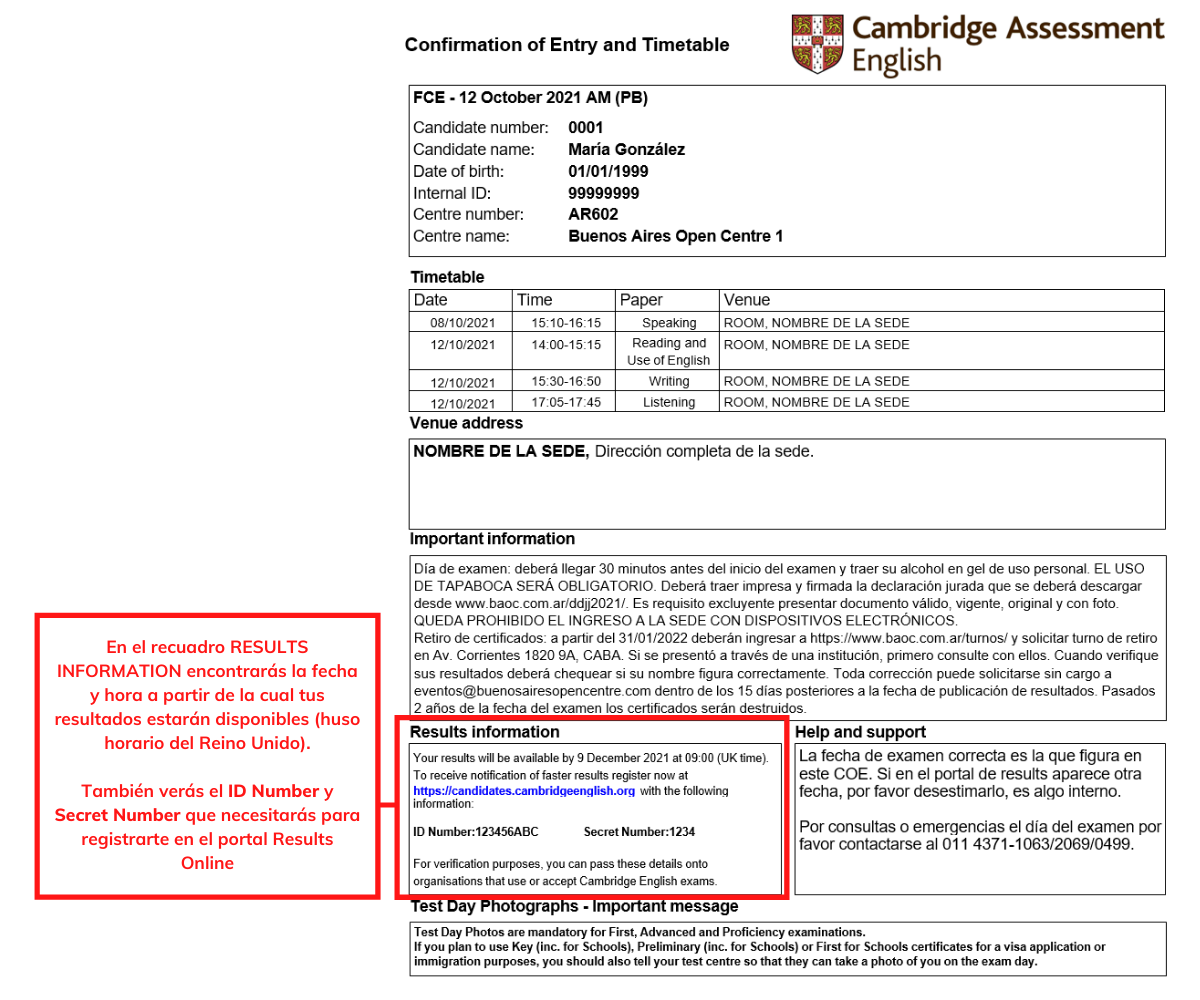 De esta forma podrás darle acceso a tu resultado online a distintas organizaciones, universidades, empleadores u otras entidades que así lo requieran. Sólo debés informarles tu ID Number y Secret Number (que figuran en el Confirmation of Entry and Timetable) y podrán consultar tu resultado de una manera sencilla, segura y rápida. Para más información, ingresá a: